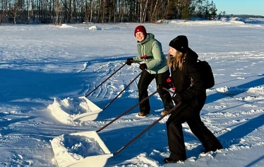 Mitä jos jäällä vettä? Mikäli apukinoksen kolaus on mahdotonta jään päällä olevan veden tai huonon lumitilanteen vuoksi, retki siirretään toiseen ajankohtaan tai retki perutaan ja osallistumismaksut palautetaan.